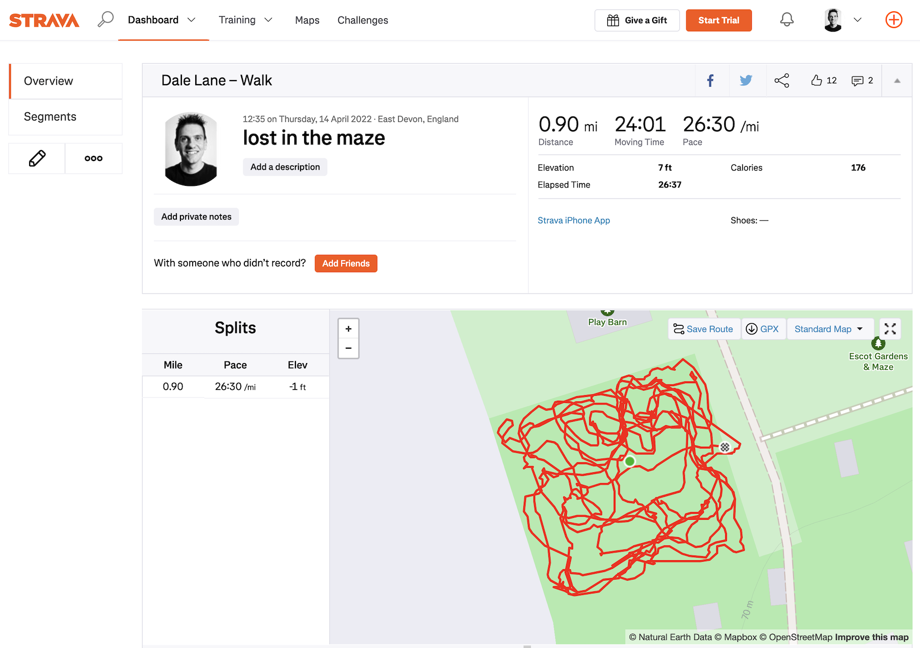 This is a great use of Strava… you just need to find a large outdoor maze.