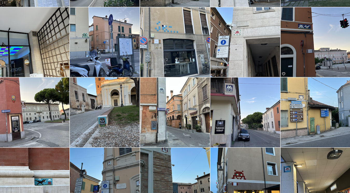 We stumbled upon a ceramic tile mosaic styled to look like 8-bit video game pixel art. It was just on a random wall, with nothing announcing, explaining, or sign-posting it.