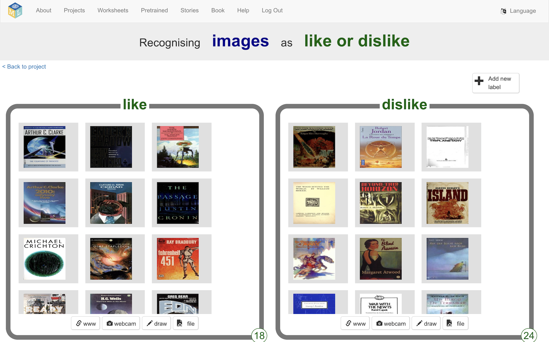 This can be used to make a recommendation system in Scratch, that predicts what you will think of new book covers.