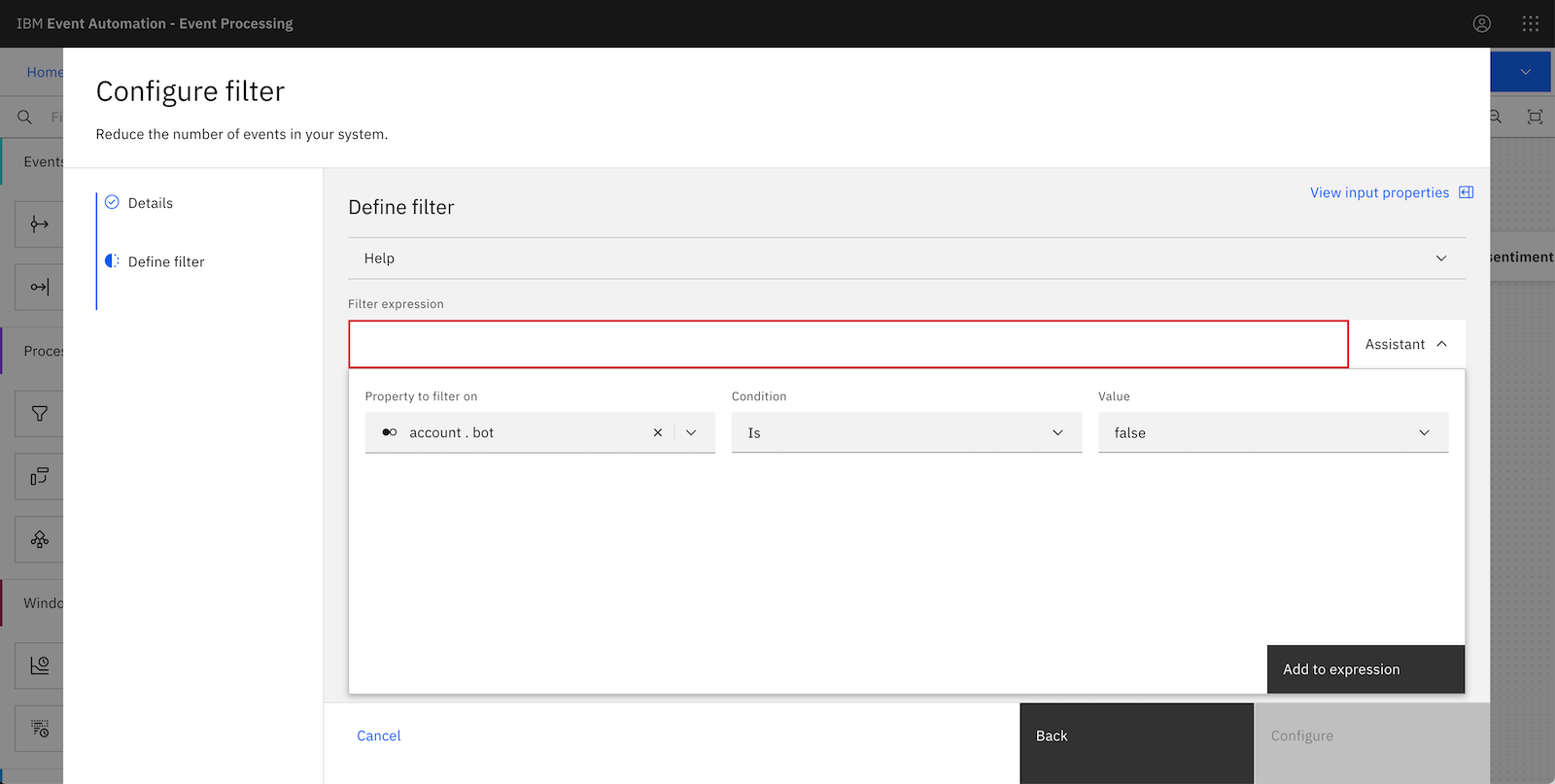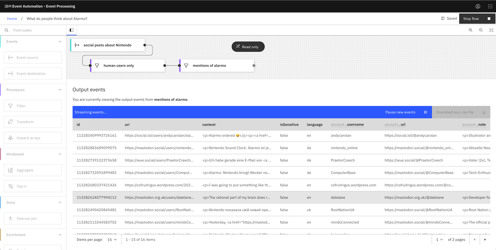 I used IBM Event Processing to create an Apache Flink job to start processing these events.