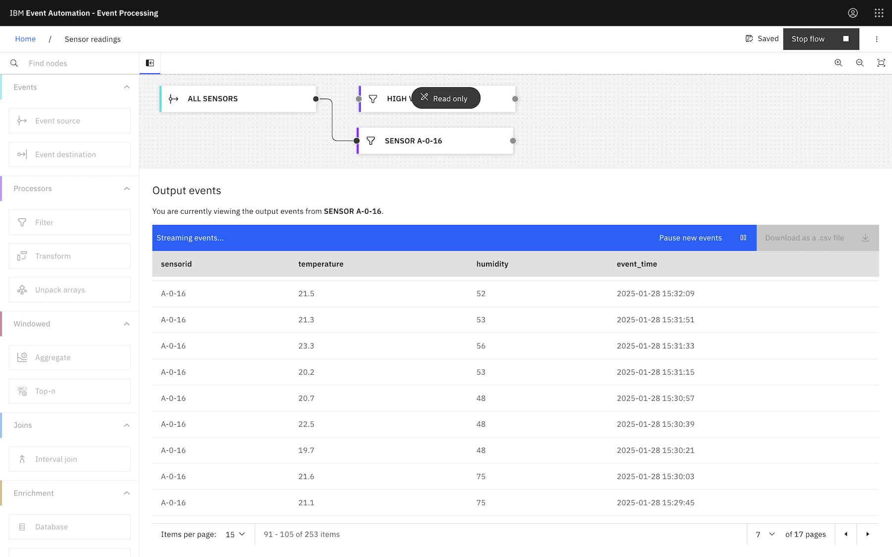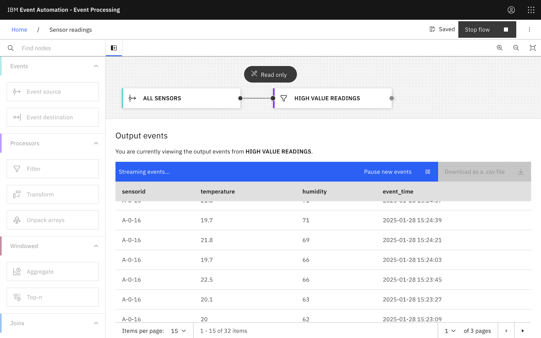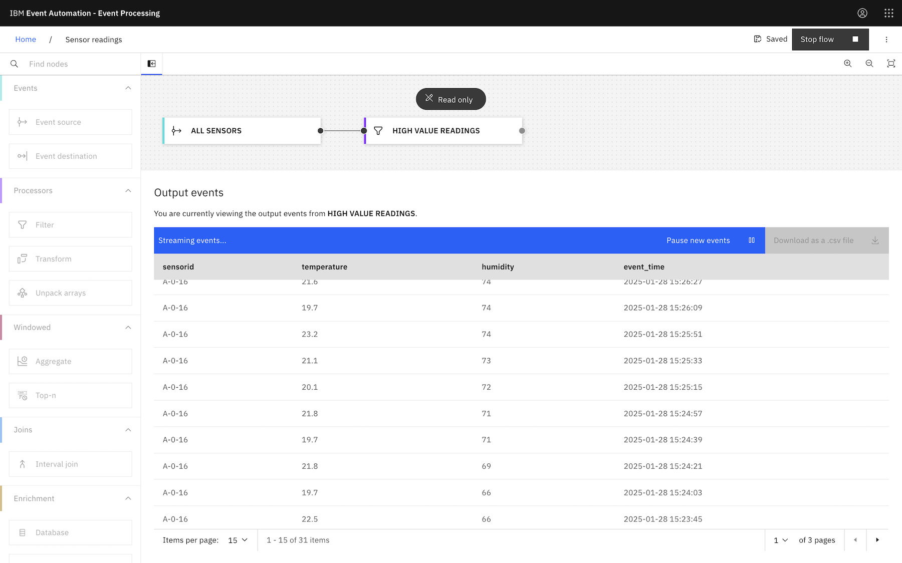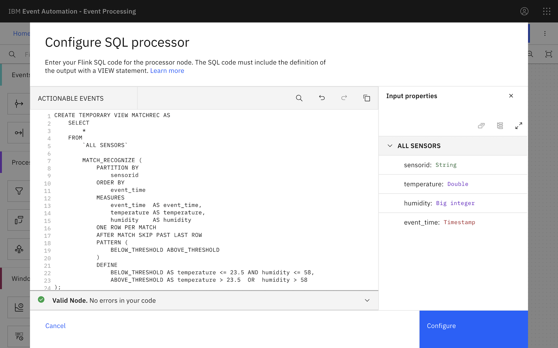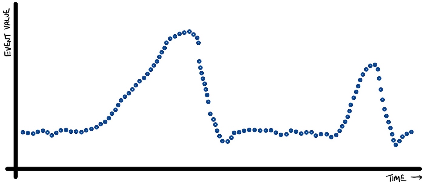 Imagine that these events represent something that you might need to respond to when the event for a sensor exceeds some given threshold.