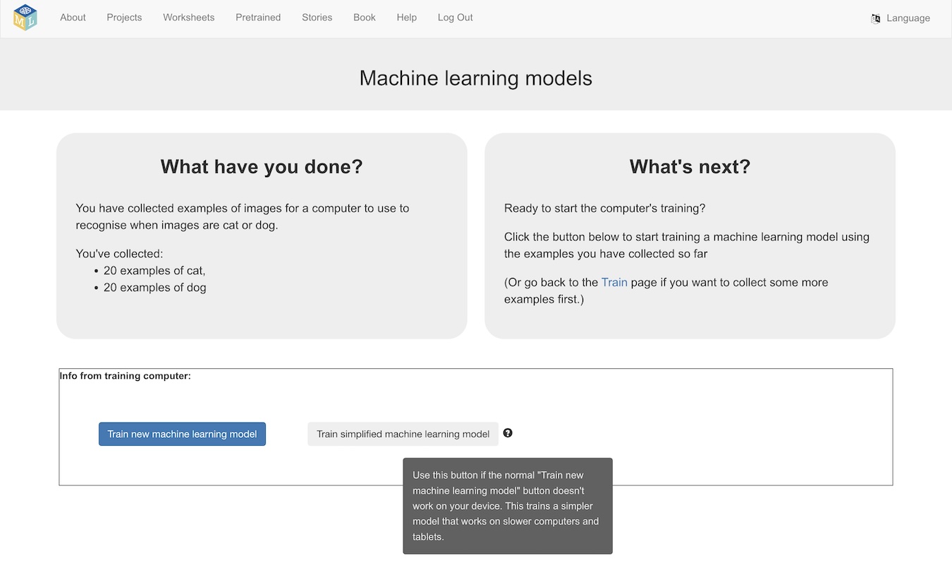 But most of my users are aged 6-11. I just give them a single Train new machine learning model button to click on, because it isn’t reasonable to expect them to understand the decisions they’d need to make otherwise.